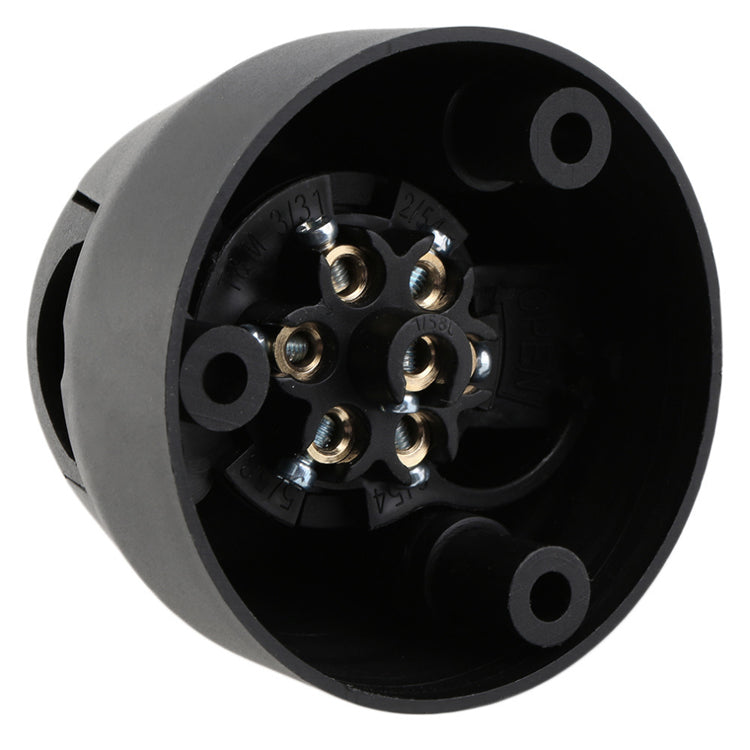 Solide kunststof stekkerdoos 7-p met schroefverbindingen.